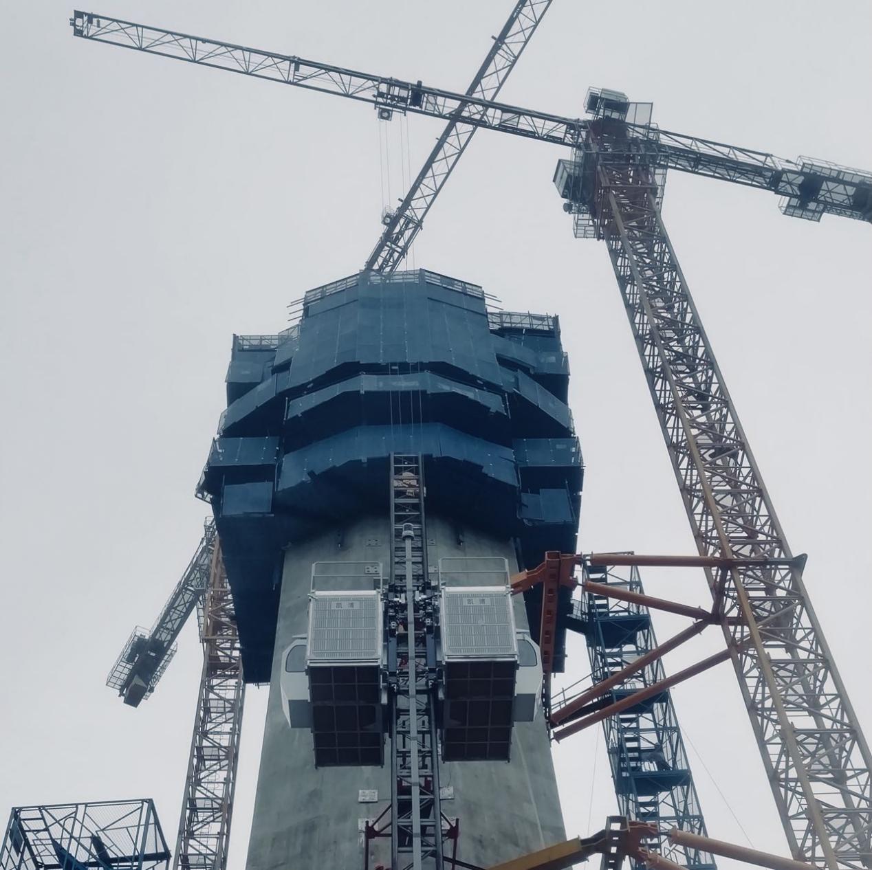 近日,廊坊凱博建設機械科技有限公司生產的斜、直線兩用施工升降機順利投入到廣東佛山“三水三橋”項目。